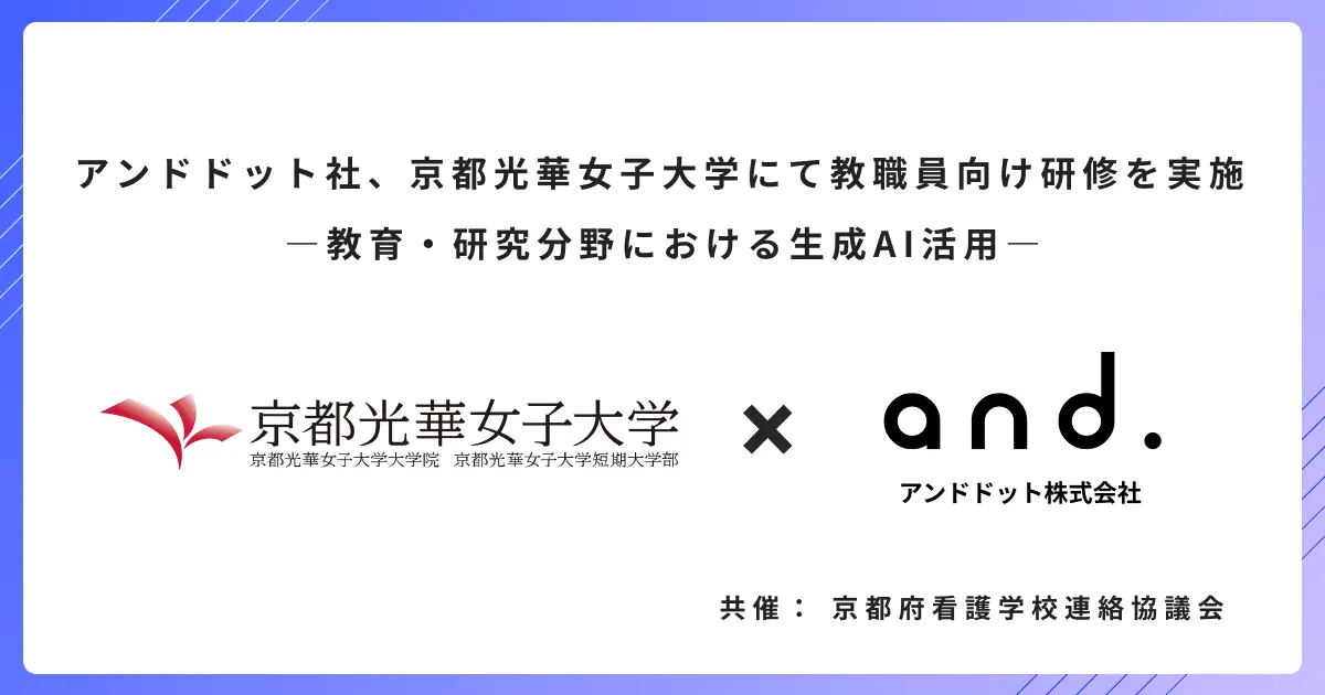 アンドドットは25日、京都光華女子大学の看護学科教職員と京都府看護学校連絡協議会の看護系教職員を対象とした「教育・研究分野における生成AI活用」に関する研修を実施したことを発表した。