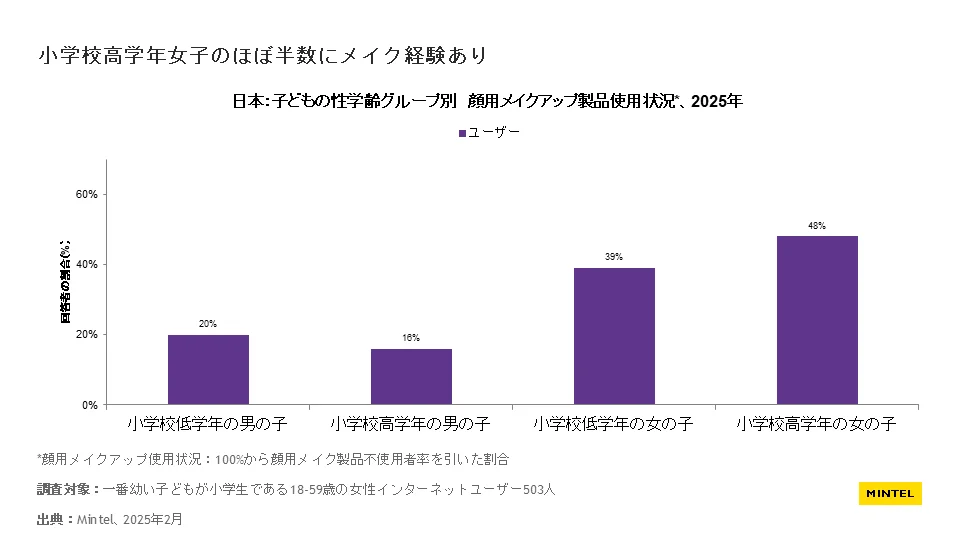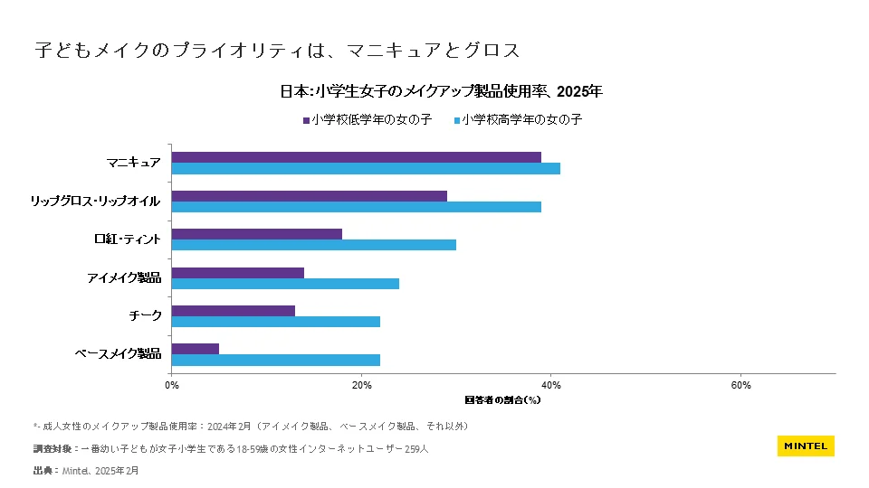 小学校高学年女子の2人に1人が「メイクアップ製品の使用経験あり」=ミンテルジャパン調べ=