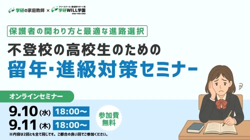 学研、「不登校の高校生のための留年・進級対策」9月10日・11日開催