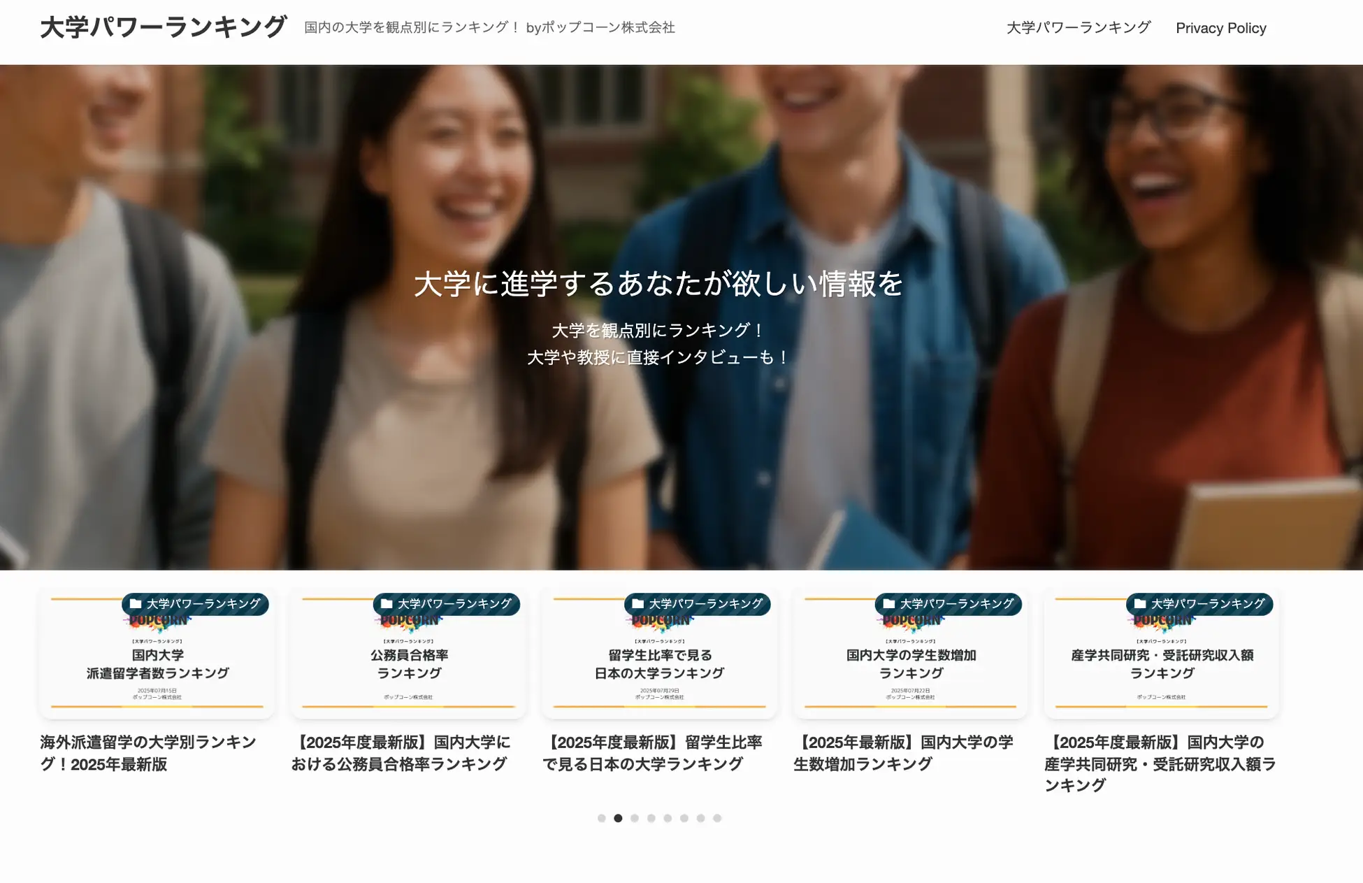 - ポップコーン、「大学パワーランキング」が学生インターンを募集