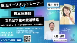 One Terraceは、文系留学生の就活戦略をテーマにした無料オンラインセミナーを9月25日に開催する。