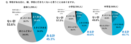 一方で半数近くは「朝、学校に行きたくないと思うことがある」と回答。行きたくないタイミングは、4人に1人(26.8%)が「月曜日」が最多の結果だった。