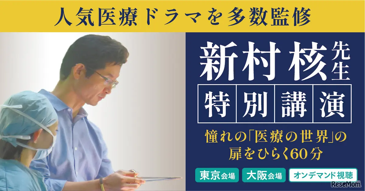 第1部では、現役脳外科医であり、数々の人気医療ドラマの監修を手掛ける新村核氏を招き、豊富な医療現場のリアル、医師のやりがいなどを伝える。第2部では、メディカルラボ教務統括の可児良友氏から、1万人以上の受験生を医学部に導いてきた知見をもとに、医学部入試の動向や学習対策について紹介する。