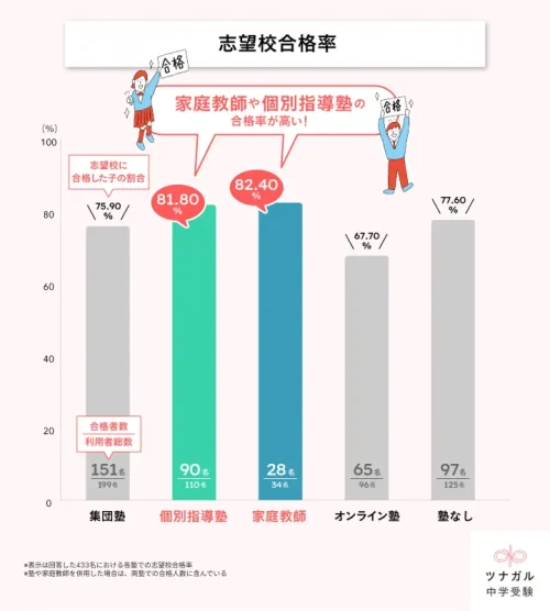 個別指導塾や家庭教師を利用した子どもが偏差値の伸びと志望校合格率で秀でた結果に=ツナガル中学受験調べ=