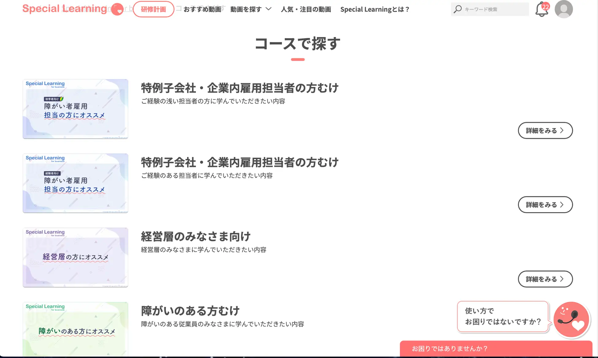 法定雇用率が2026年に2.7%へ引き上げられる中、障がい者雇用の担当者から「時間がない」「何から学べばいいか分からない」という声が多く寄せられている。400本以上の動画から自分に必要な内容を探す手間を省き、効率的な学習を実現するため、目的別プランを開発した。