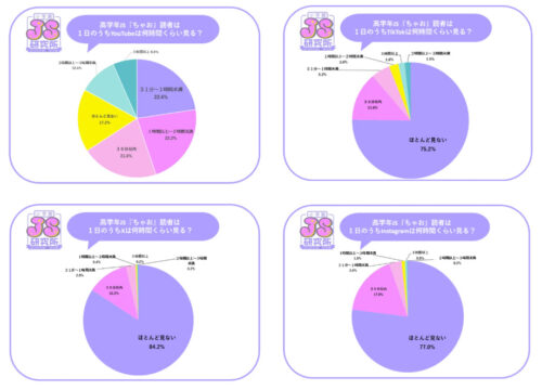 一方で、TikTokやInstagramの利用が「30分以内」のライトな接触に留まる傾向にあるのは、友人とのトレンドチェックや気分転換といった、気軽な交流ツールとして使っている可能性があり、イマドキのJSは「じっくり楽しむYouTube」と「手軽なSNS」を無意識に使い分けていることが伺える。