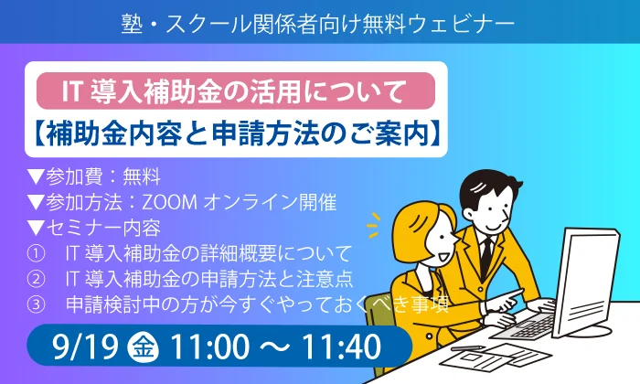 タオは、同社のICT教材「天神」の新規導入を検討している学習塾経営者などを対象に、同教材の「IT導入補助金2025」の活用法を解説する無料オンラインセミナーを、9月19日に開催する。