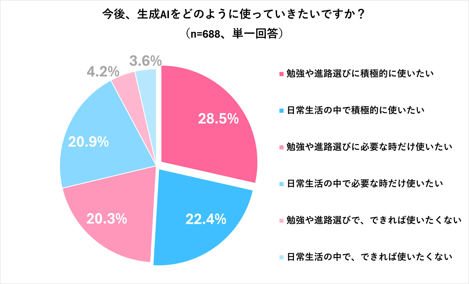 一方、「生成 AI を使えることで就職や進学に有利になると思う」のように、生成 AI を使えること自体が強みという考え方は少数だった。