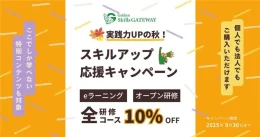 学研ホールディングスのグループ会社TOASUは、「Gakken Skills GATEWAY」で、期間限定の「実践力UPの秋! スキルアップ応援キャンペーン」を9月12日から30日まで開催する。