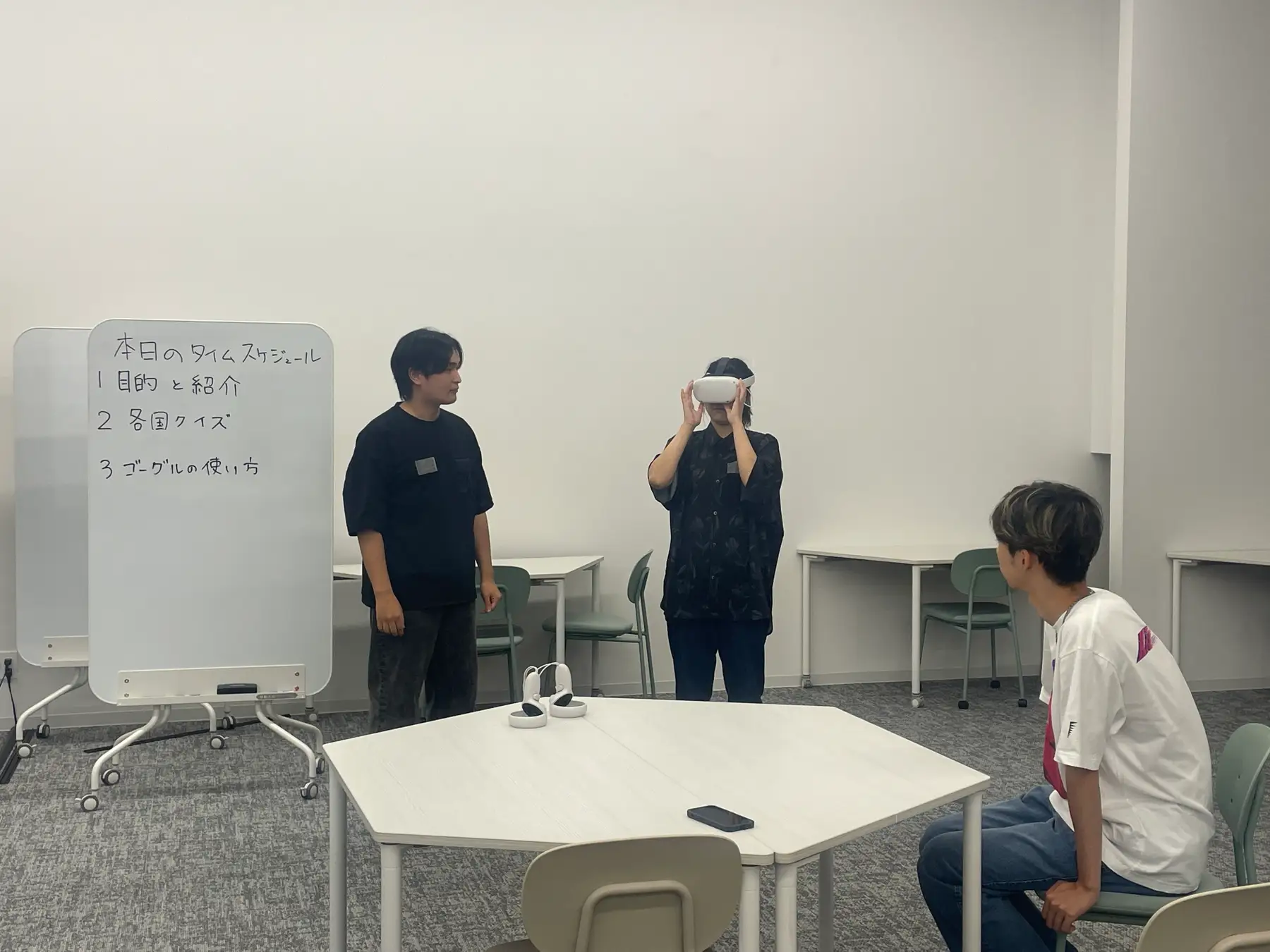 日本人学生6名と留学生5名が企画に参加。留学生が帰国時に撮影した写真や、家族・友人に依頼して撮影した素材、さらにインターネット上の映像を組み合わせたVRコンテンツを制作した。当日はグループに分かれてアイスブレイキングを行った後、各国のVR映像を体験し、留学生の解説やグループディスカッションを通して理解を深める。写真やプレゼンテーションでは得られない没入感を活かし、まるで留学生と「横に並んで」世界を旅するような臨場感のある体験を提供する。