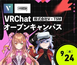 Vと東京スクールオブミュージック&ダンス専門学校(TSM)は、ソーシャルVRプラットフォーム「VRChat」上でバーチャル空間でのオープンキャンパスを9月24日に開催する。