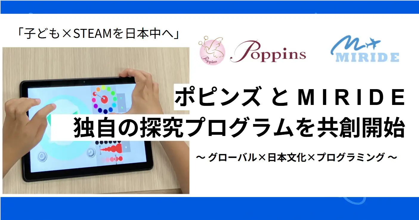 今回の取り組みは、未来を見据えた教育理念で両社が共鳴したことをきっかけに実現。ポピンズが持つ幼児教育の知見とグローバルな視野、そしてMIRIDEの探究/STEAM教育の専門性というそれぞれの強みを融合させて、子どもたちの未来を創っていくもの。