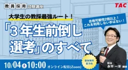 TAC、教員採用試験のオンラインセミナー「大学生の教採最強ルート!『3年生前倒し選考』のすべて」10月開催