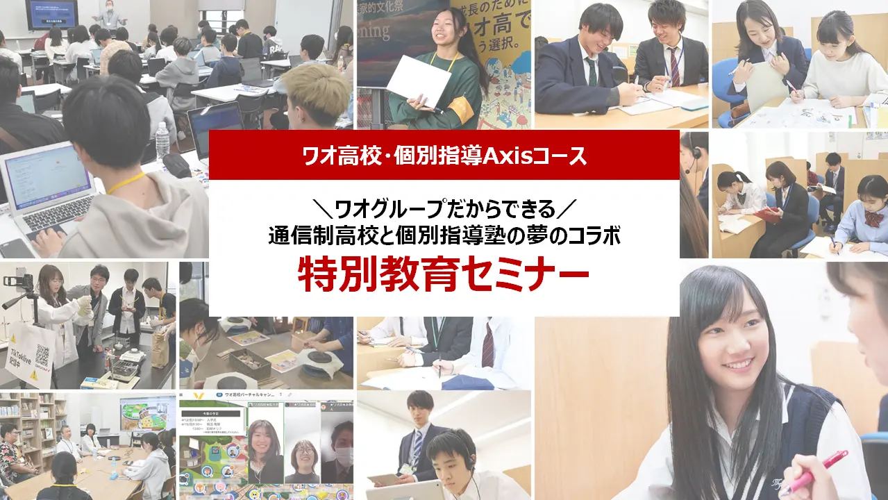 ワオ高等学校は、同校の母体であるワオ・コーポレーションが運営する「個別指導Axis」と共催で、全国各地で「特別教育セミナー」を開催する。