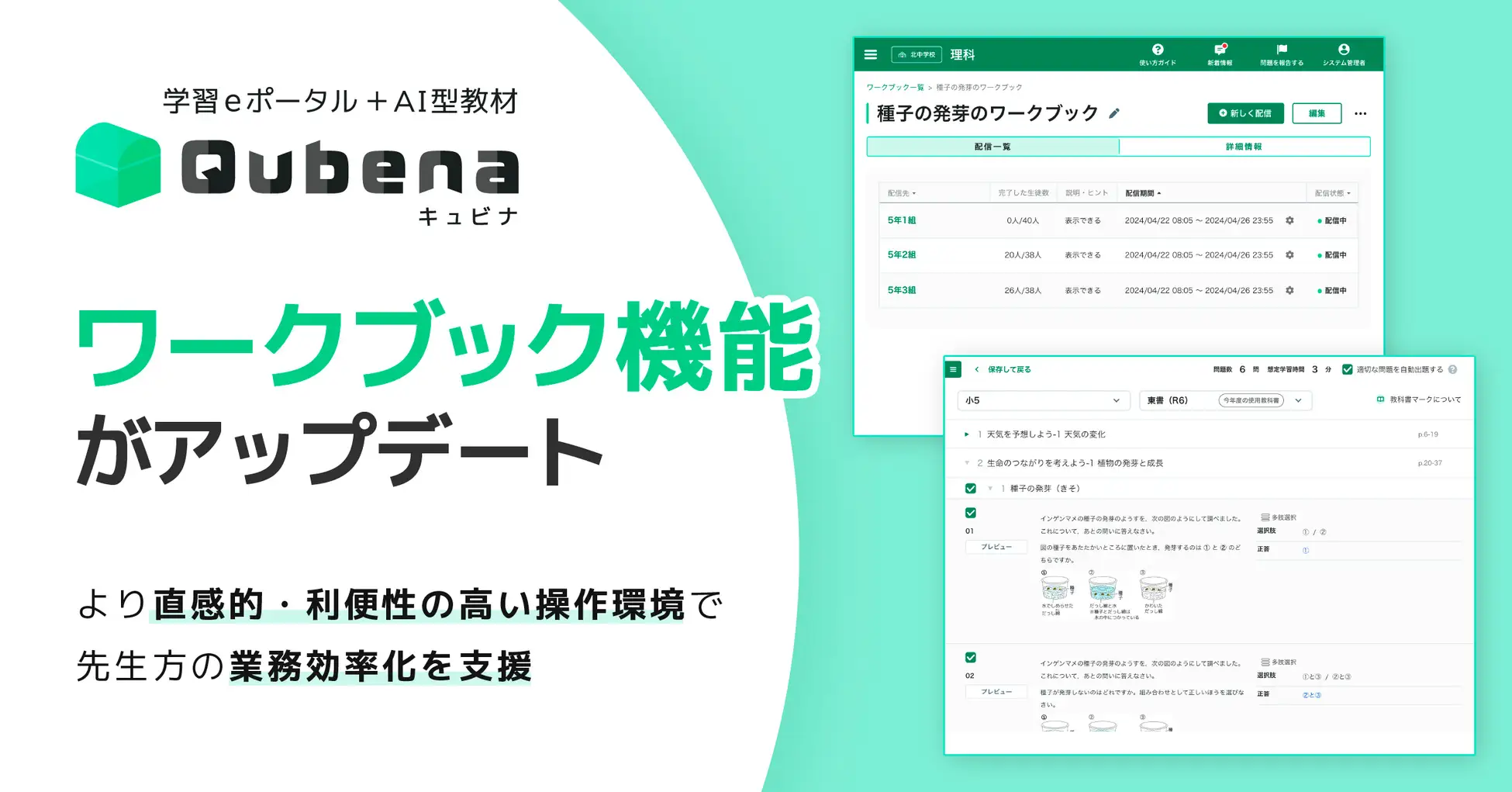 学習eポータル+AI型教材「キュビナ」を開発・提供するCOMPASSは29日、キュビナの演習問題配信機能「ワークブック」のアップデートを実施したと発表した。
