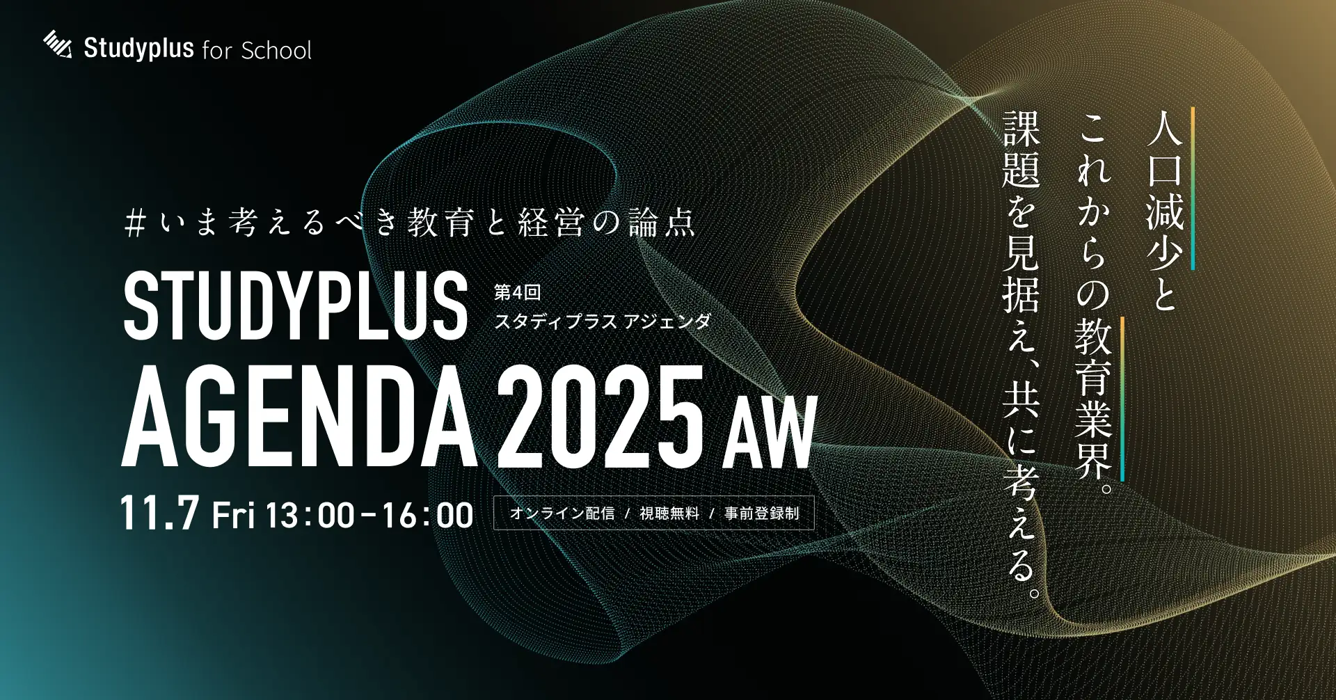 スタディプラスは、11月7日に、「Studyplus Agenda 2025 AW~いま考えるべき教育と経営の論点~」と題するオンラインカンファレンスを無料開催する。