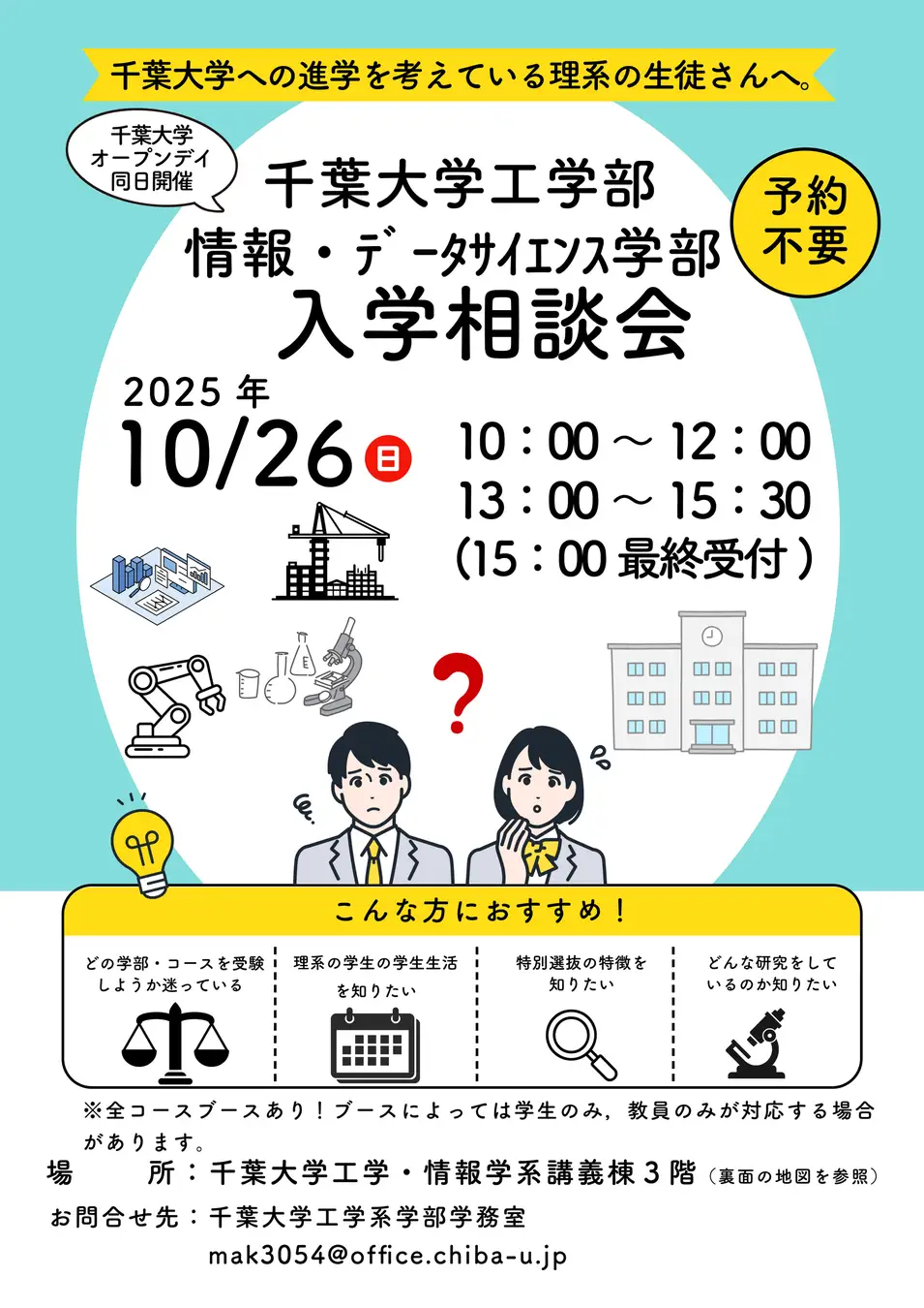 千葉大学、工学部/情報・データサイエンス学部の入学相談会を26日開催