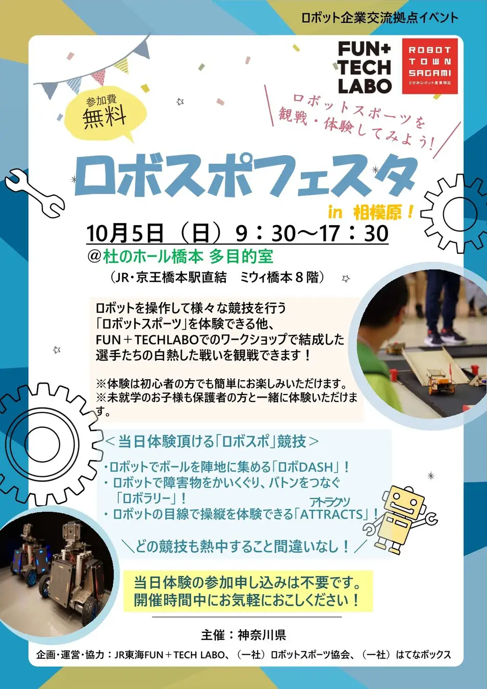 神奈川県は、ロボットを操作して様々な競技を行う「ロボスポフェスタ」を10月5日に開催する。