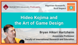 新エピソードは、エピソード2: “Hideo Kojima and the Art of Game Design”。メディアやゲーム研究の専門である国際学術院のハーツハイム ブライアン ヒカリ 准教授をゲストに迎え、MCを務める博士後期課程学生のファビアン氏とともに、ビデオゲームが持つ文化的意義と創造的革新について語る。