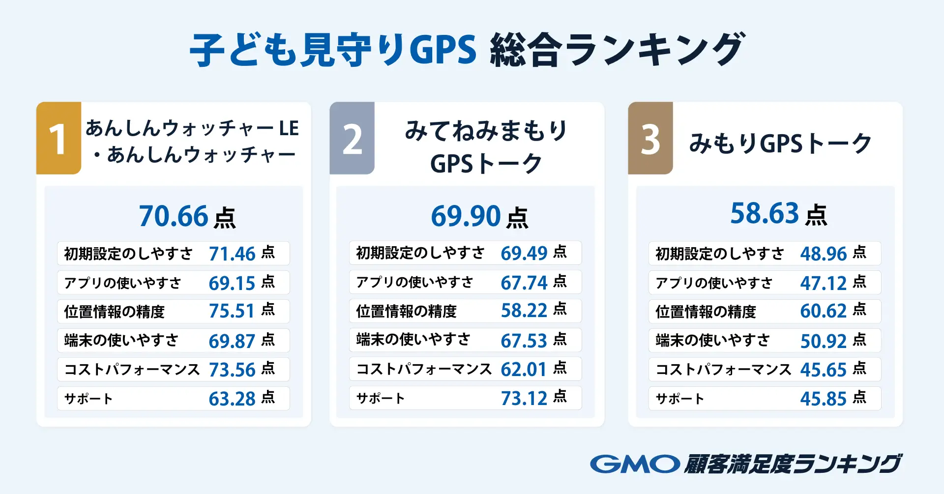 GMO顧客満足度ランキング、「子ども見守りGPS」の総合1位は「あんしんウォッチャー」
