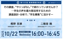 マインドシェアは、教育機関の関係者限定のオンラインセミナー「その調査、“やりっぱなし”で終わっていませんか?~学生の声を最大限活用するための調査設計・分析で、“学生募集”に活かす~」を、10月22日に無料開催する。