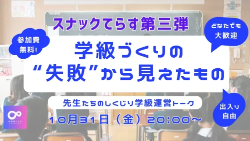 NIJIN、「学級づくりの“失敗”から見えたもの~先生たちのしくじり学級運営トーク~」31日開催