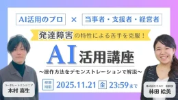 キズキは、発達障害の特性による仕事への苦手意識を克服するための「AI攻略法」を紹介したオンライントークイベントのアーカイブ動画を、11月21日までの期間限定で無料配信する。