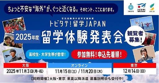 文部科学省による官民協働の留学促進キャンペーン「トビタテ!留学JAPAN」は、「留学体験発表会」を11月3日に開催する。