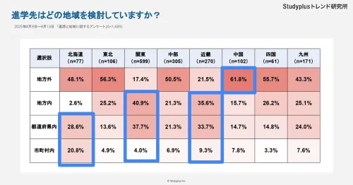 スタディプラスのStudyplusトレンド研究所は21日、全国の高校生を対象に「地域と進路に関するアンケート」を実施した結果を公表した。