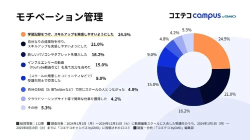 動画編集スクールでの学びの主流は“主体的スキルアップ” =コエテコキャンパス byGMO調べ=
