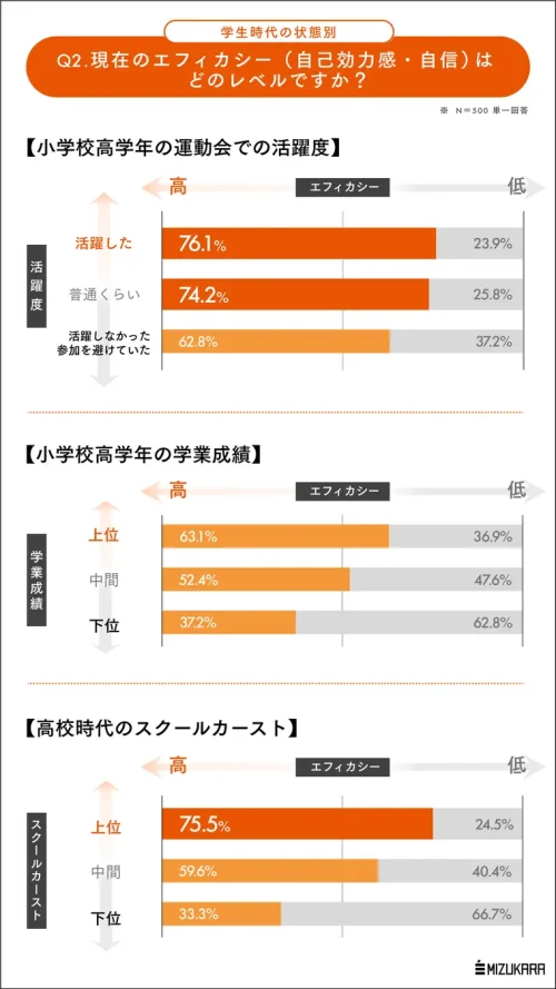 小学校の運動会で活躍した人は、社会人になっても4人に3人が高いエフィカシー(自己効力感)をキープ=ミズカラ調べ=