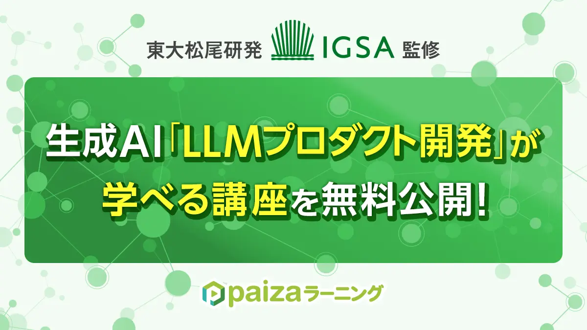 - paiza、東大松尾研発IGSA監修「生成AI組込みアプリの企画・開発 基礎編」無料公開