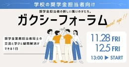 ガクシーは、奨学金業務に携わる学校担当者向けの交流イベント「ガクシーフォーラム」を、11月28日にオンライン、12月5日にオフライン(東京都内)で、無料開催する。