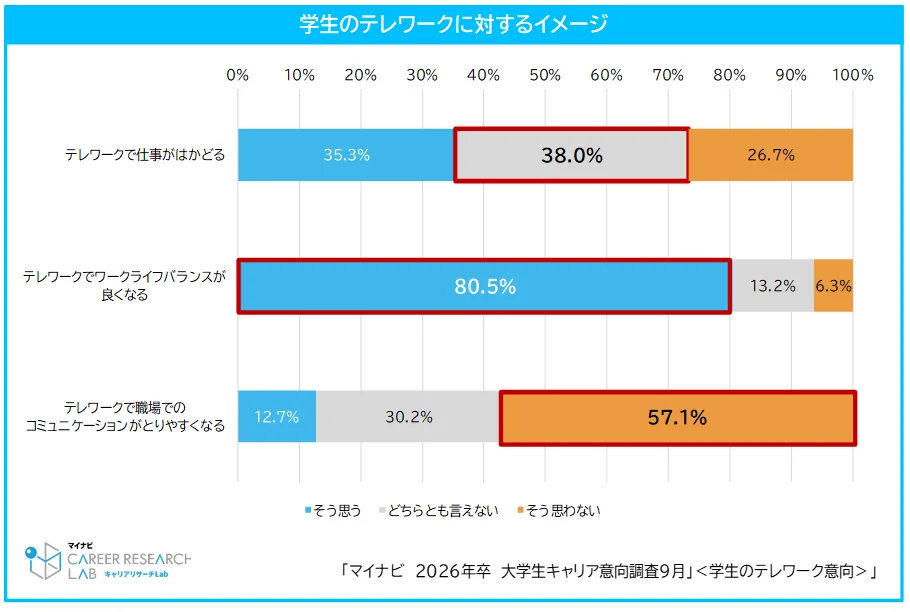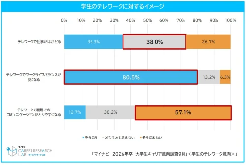 マイナビは27日、2026年卒業予定の全国の大学生、大学院生を対象に実施した、「マイナビ2026年卒大学生キャリア意向調査9月<学生のテレワーク意向>」の結果を発表した。