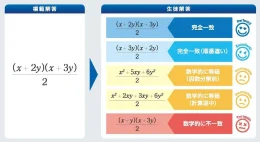 採点では別解の登録が不要なうえ、約分されていない場合や同類項がまとめられていない場合なども判定できる。誤答の理由も分析でき、より深い学習評価を実現する。