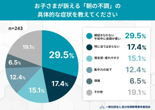 起立性調節障害改善協会は29日、小〜高校生の子どもを持つ全国の保護者243人を対象に実施した、「子どもの朝の不調に関するアンケート調査」の結果をまとめ発表した。