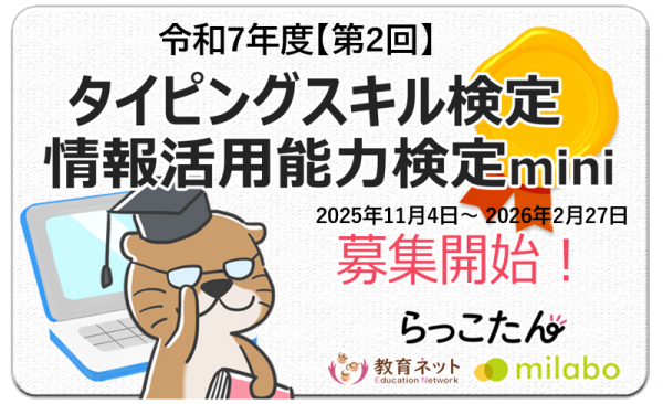 教育ネット、「令和7年度【第2回】タイピングスキル検定・情報活用能力検定mini」募集開始