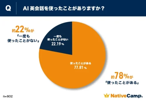 「ネイティブキャンプ英会話」を展開するネイティブキャンプは30日、AI英会話およびオンライン英会話の利用実態に関する調査結果を公表した。