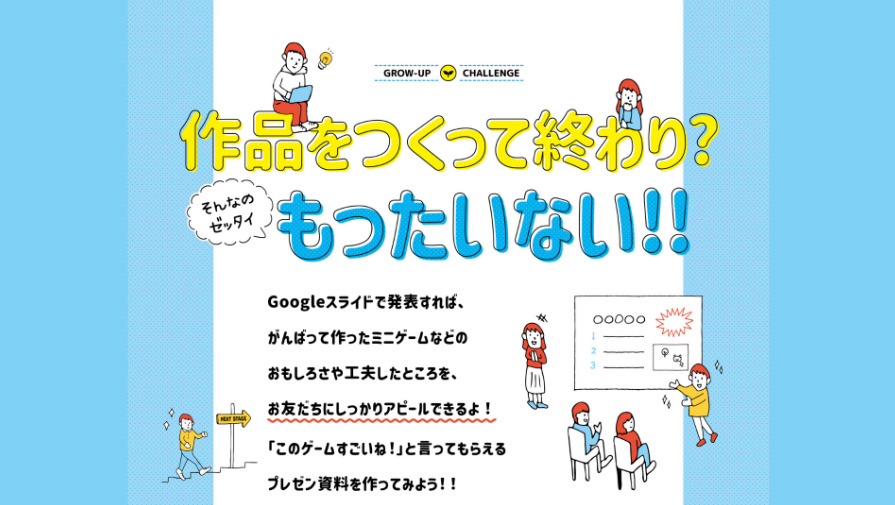 テーマ:自分が制作した作品を紹介するスライド資料(Scratch・Minecraft・Robloxなど)