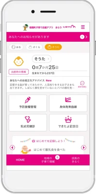 育児日記として使用できる「できたよ記念日」は、こども家庭庁の母子健康手帳様式例などを元に作成し、母子健康手帳の「保護者の記録」を含む発達段階や子育てにかかわる記念日を写真やメッセージと共に記録できるだけでなく、子どもの成長・発達の目安としての役割も備えている。また、非常時においても安心して出産・子育てができる環境づくりをサポートする。