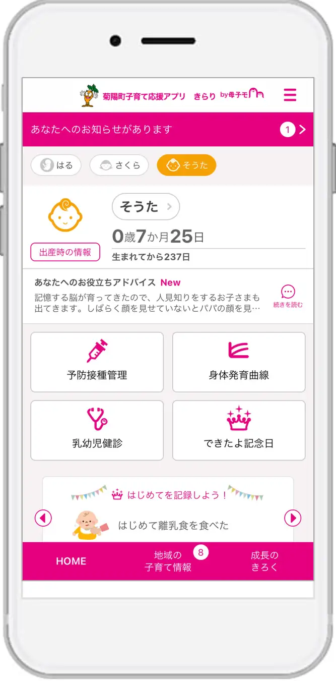 母子モは1日、母子手帳アプリ「母子モ」が熊本県菊池郡菊陽町に本格導入され、「菊陽町子育て応援アプリ きらり」として提供開始したことを発表した。