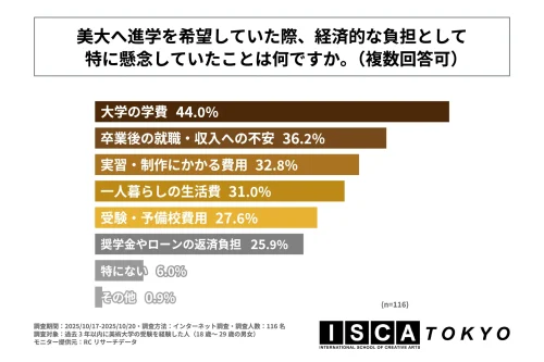 芙蓉エデュケーションズが運営する「ISCA TOKYO」は5日、「美大へ進学を希望する人の進路選択における不安に関する調査」の結果を公表した。