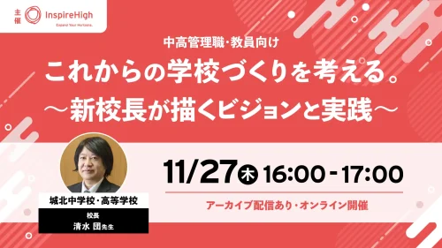 Inspire Highは、これからの学校づくりをテーマにした中高の管理職向けオンラインセミナーを11月27日に開催する。