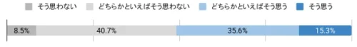 「選択した施策が集客に繋がっていると感じる」では、「そう思う」「どちらかといえばそう思う」は合わせて約51%となり、過半数が施策の直接的な集客への繋がりを感じているという結果だった。