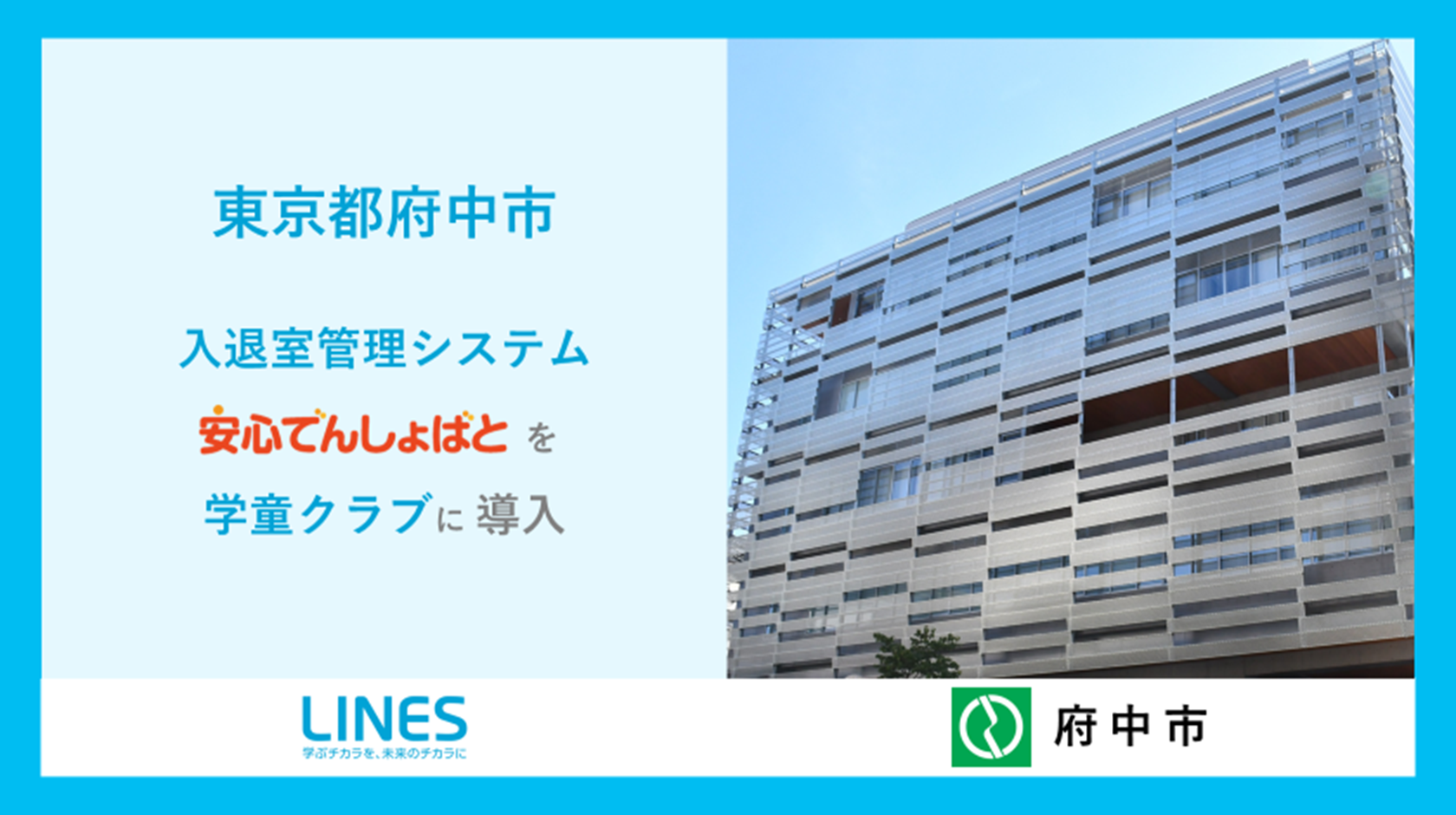 ラインズ アフタースクール支援事業は20日、入退室管理システム「安心でんしょばと」が東京都府中市に正式採択され、府中市立学童クラブ全22施設(児童・職員約 2770人)で3月から利用が開始されていることを発表した。