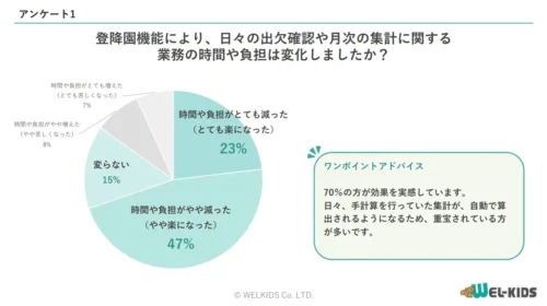 園のICT活用効果。6割以上はICT導入による業務負担の軽減を実感 =ウェルキッズ調べ=