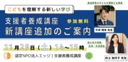 講座内容の詳細や新章の概要を紹介する 無料オンライン説明会を、11月29日(土)14:00〜15:00(Zoom)に実施。講座の対象となる保護者、教育・福祉支援者、子どもに関わる関係者などに広く公開されている。参加には事前申込が必要。