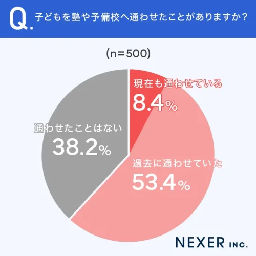 その一方で、38.2%は「通わせたことはない」と回答しており、子どもの教育方法が多様化している現代で、塾が学習の1つの大きな柱でありながら、家庭学習やその他の方法を選ぶ家庭も少なくない現状を示す結果となった。
