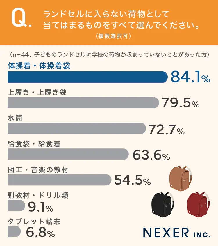 ランドセル、5人に1人以上の保護者が「荷物が入りきらない」を経験 =NEXER・ララちゃんランドセル調べ=