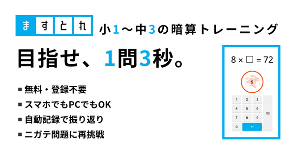 これらの課題を解決できるアプリを「自分でつくってみよう」と、個人開発を始めることにしました。そうして生まれたのが、無料のWeb計算ドリル『ますとれ』です。